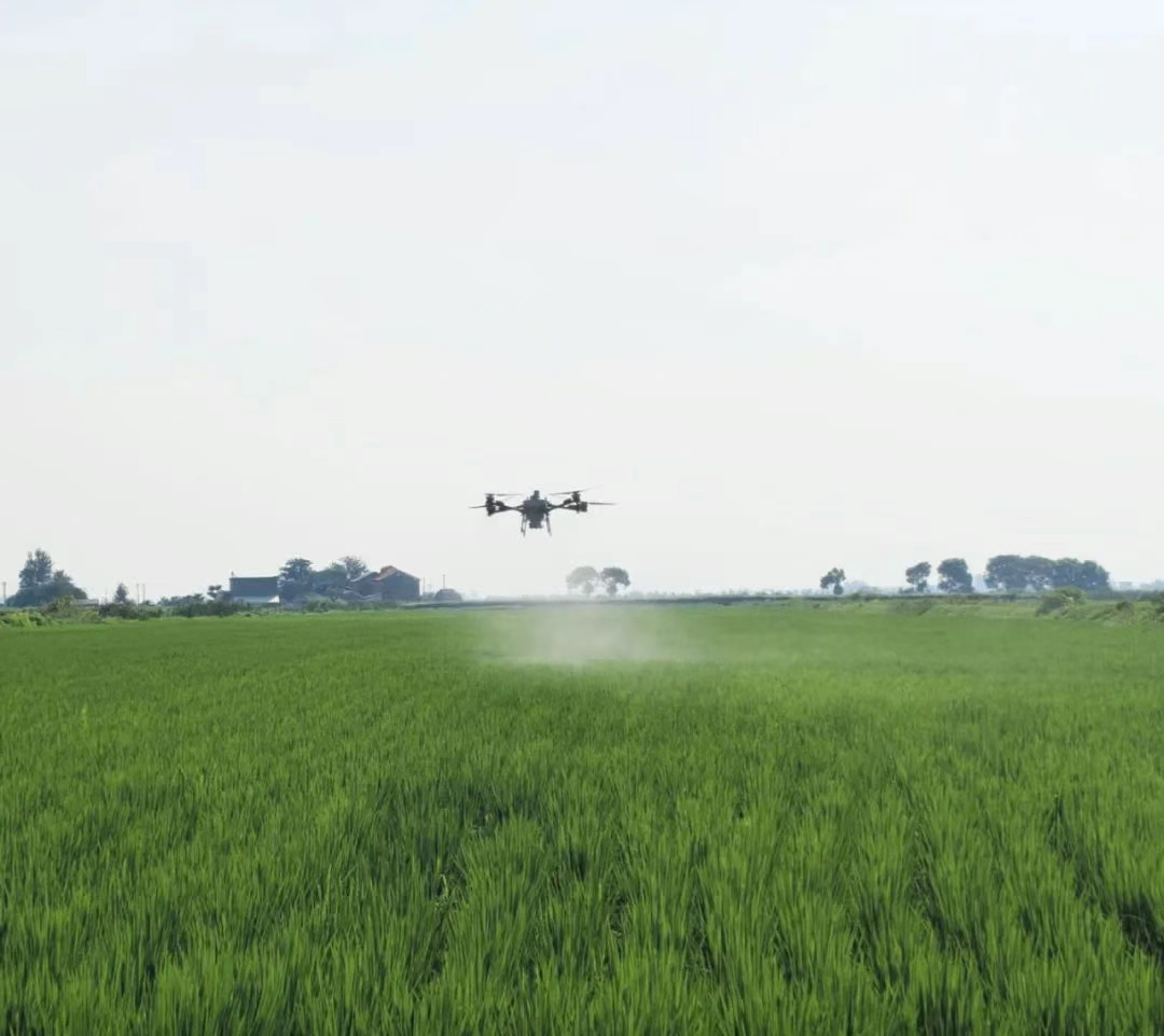 8月25日,在华阳河农场第六农业分场地块,一架满载混合药液的植保无人机腾空而起,沿着预设路线匀速飞行,短短5分钟便完成15亩稻田的喷施作业。在秋粮产量形成的关键时期,垦区多个农场使用高效智能大型植保机、无人机,落实“一喷多促”技术措施,加强水稻、大豆等在地作物管理。