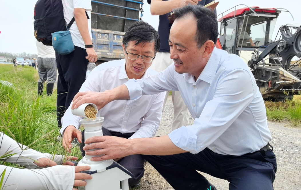 皖河农场“稻麦周年均衡增产项目”测产。(徐丽燕 摄)